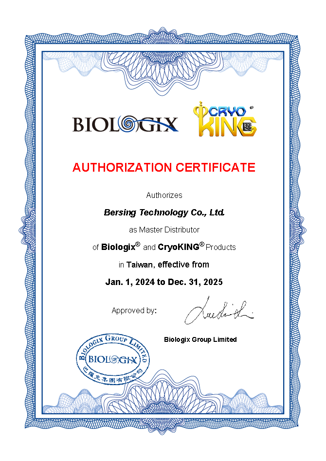 2024~2025 Biologix & CryoKING授權證書 | 伯新科技股份有限公司