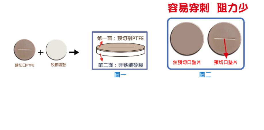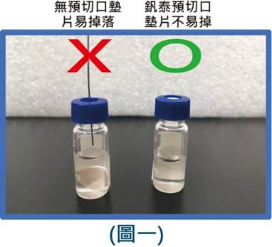 - 多次進樣穿刺時,墊片不易掉落(圖一)。