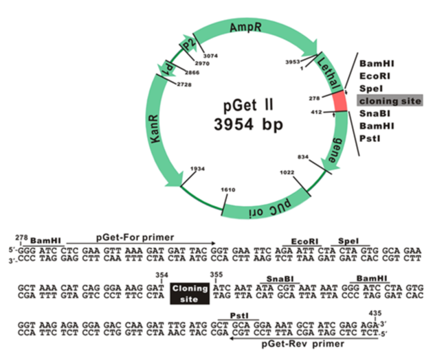 Component Volume pGet ll Vecter(25ng/ µl) 23 µl pGet-For Prime(10 µM) 100 µl pGet-For Prime(10 µM) 100 µl