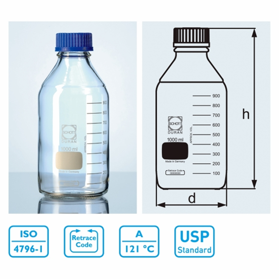 (附刻度,藍色PP蓋,耐熱140度)容量︰1000ml,瓶蓋︰GL45,外徑︰101mm