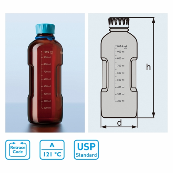 瓶身形狀更為修長之 YOUTILITY 瓶可更為充分之利用高壓蒸汽滅菌器與實驗室冷凍櫃內有限之空間。